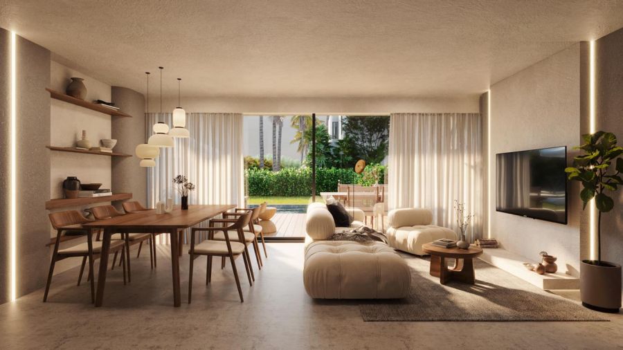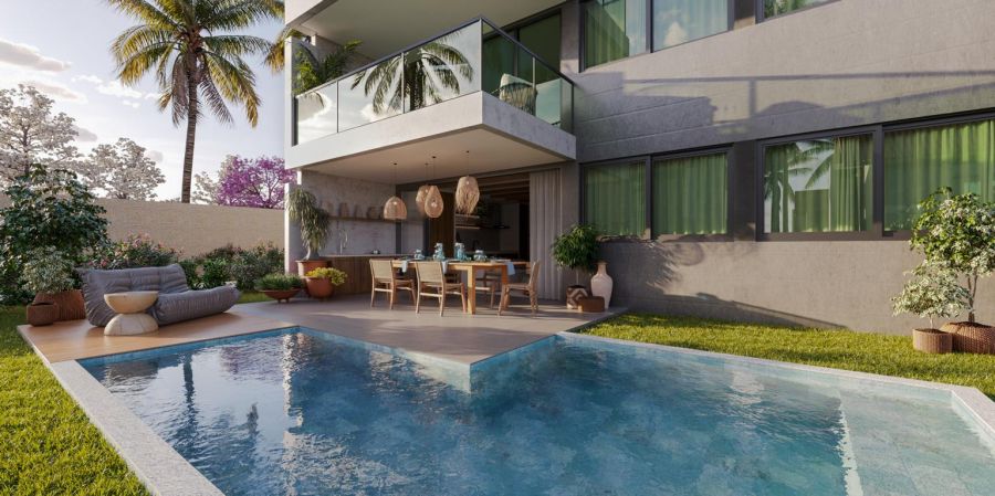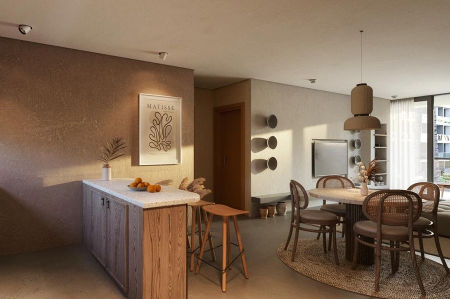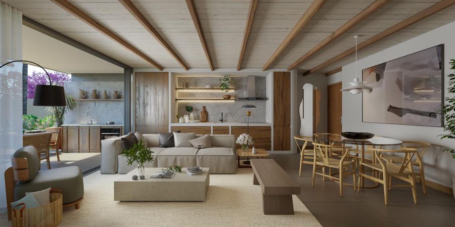 Com uma área privativa de 154,20 m², o imóvel foi projetado para oferecer o máximo de conforto e privacidade. A planta inteligente dispõe de quatro suítes amplas, garantindo total independência e bem-estar aos seus moradores e convidados. A área social é composta por uma sala integrada que privilegia a convivência, conectando-se harmoniosamente ao ambiente litorâneo.